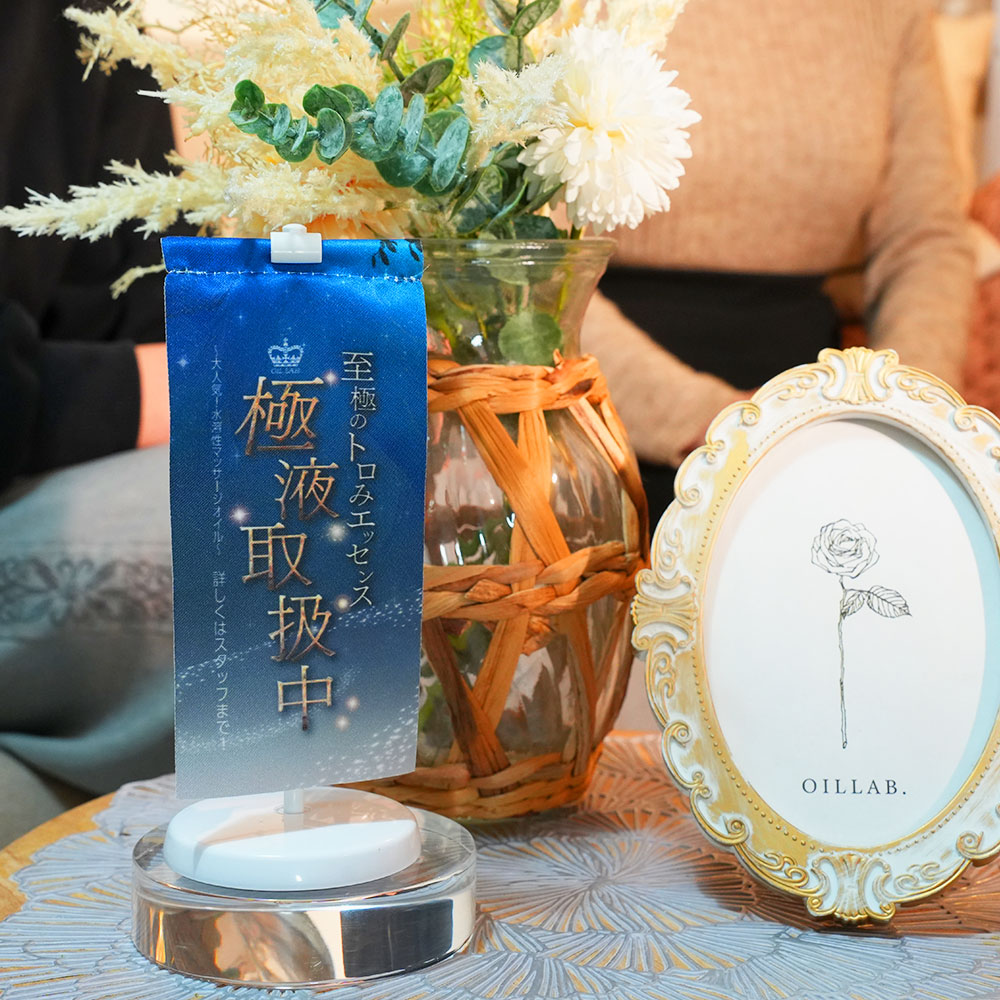 小さなテーブルにも置ける省スペース設計。メニュー表横に配置することで極液施術を効果的にアピール。