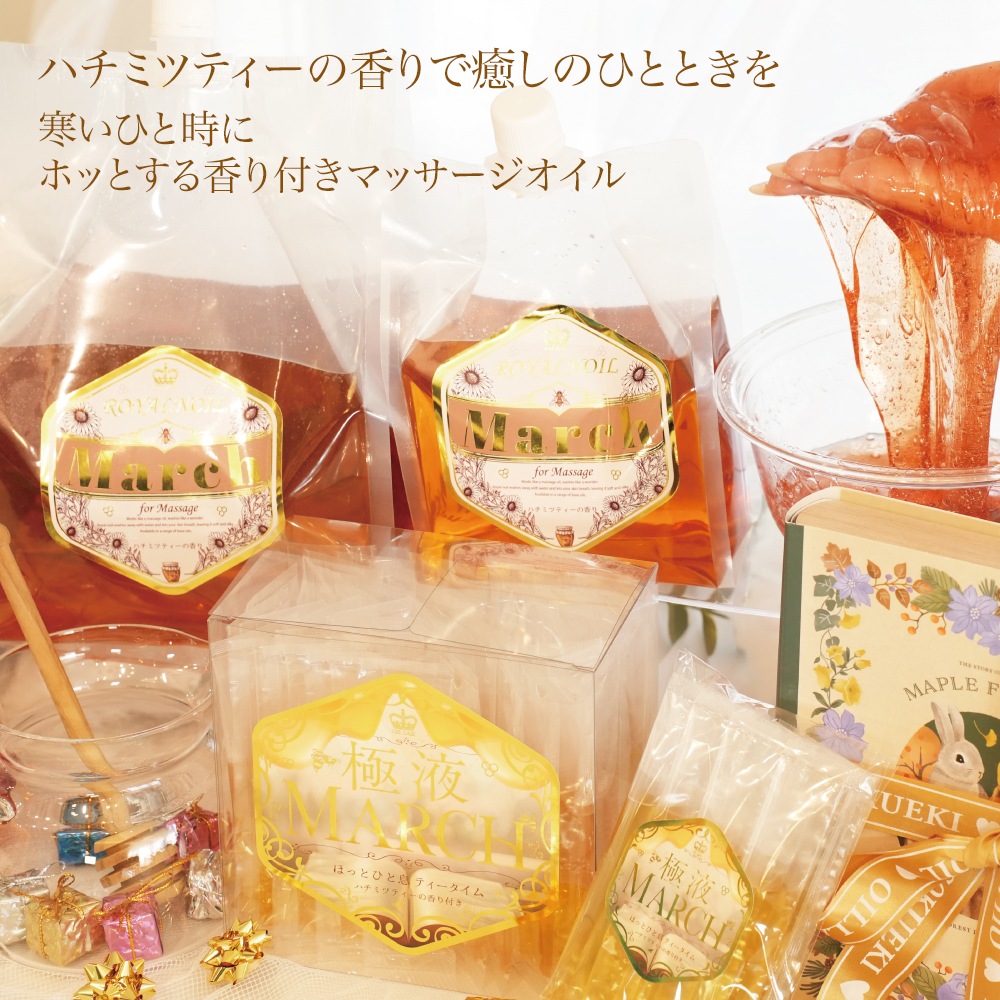 ハチミツ成分たっぷりの極液マーチは水溶性マッサージオイルと混ぜ合わせると保湿力抜群なモチモチの液体に進化♪