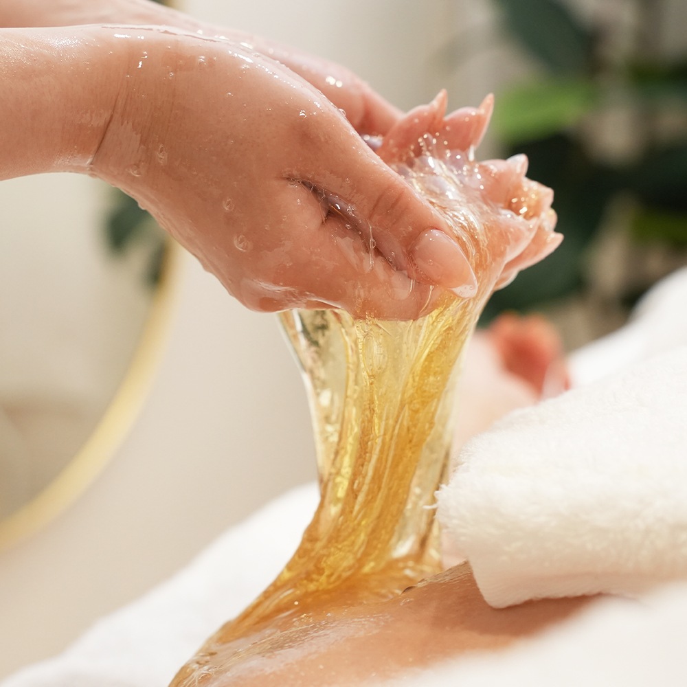 ■適量を手に取り、全身に薄くのばします。マッサージ後は、清潔なホットタオル等で拭き取るか洗い流して下さい。