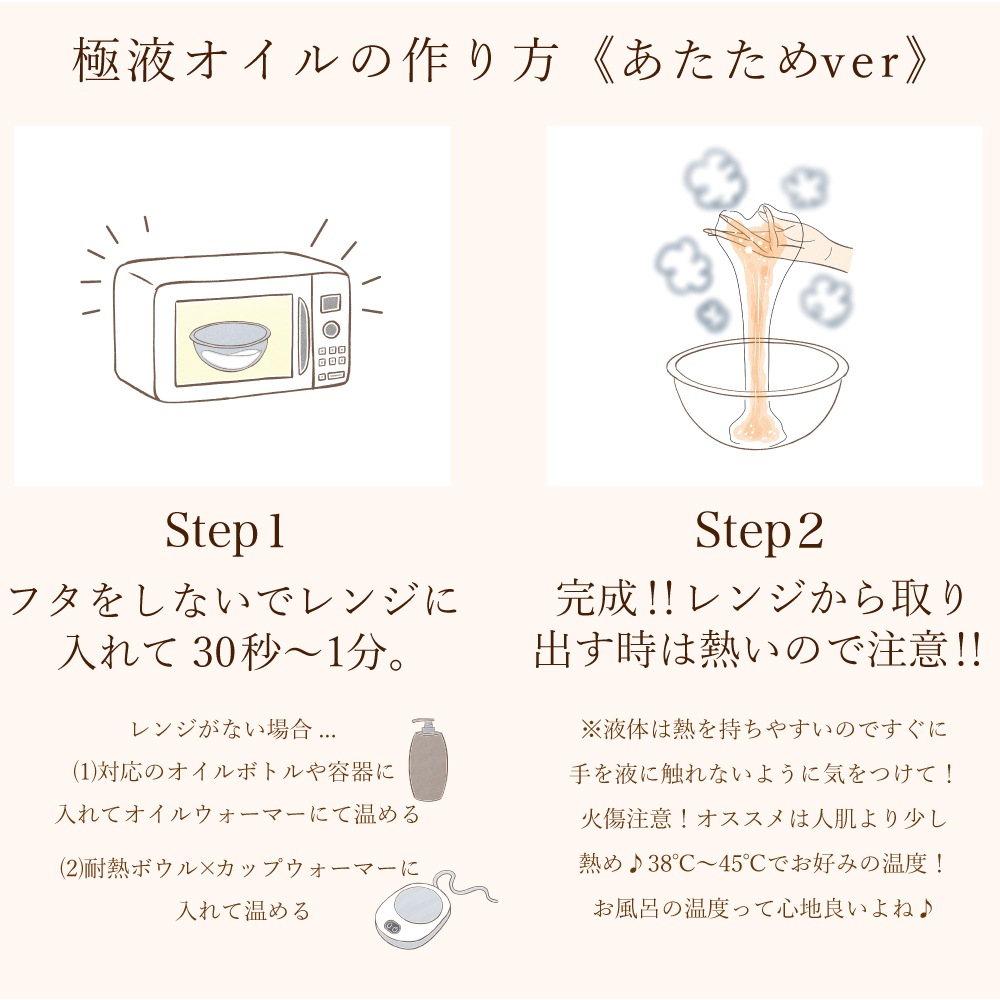 *加熱後は非常に熱くなっておりますので、人肌まで冷ましてからお使いください。